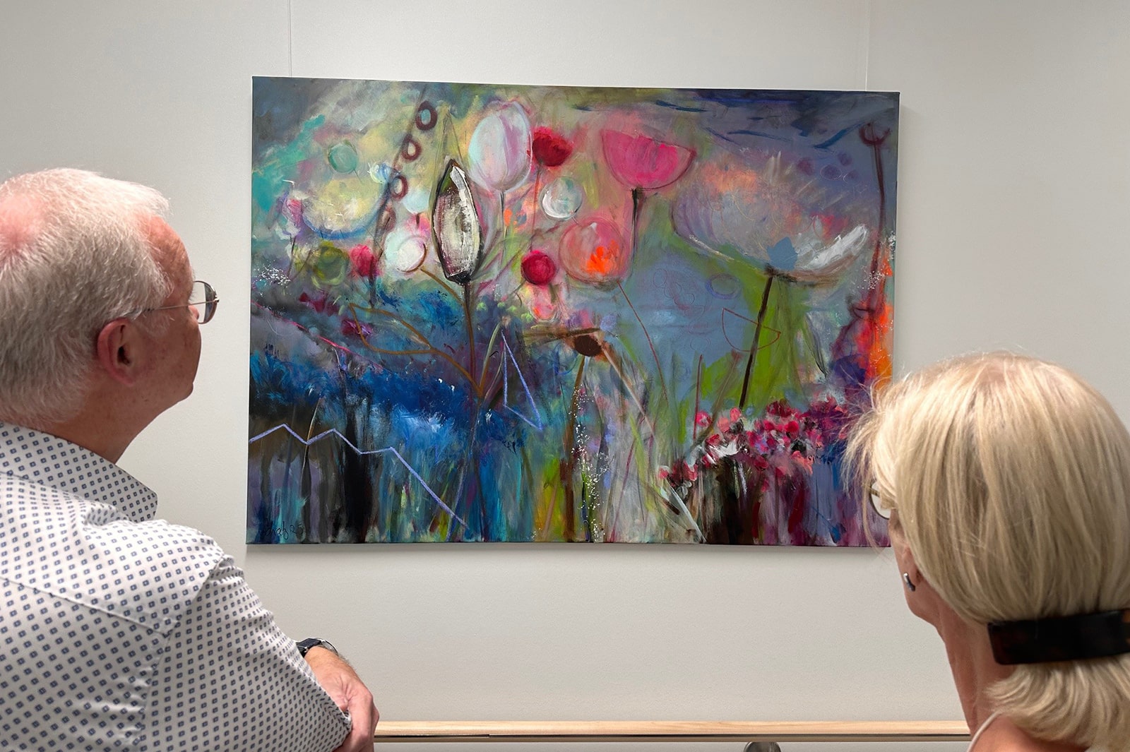 Die Essener Künstlerin Susanne Schalz hat eine Sonderedition von sechs Bildern geschaffen, zugunsten des Mentorinnenprojekts. Das von Susanne du Bois initiierte und von der Brost Stiftung geförderte Projekt bringt ehemals an Brustkrebs erkrankte Frauen an den Kliniken Essen-Mitte zusammen, die aktuell Betroffene begleiten. Schon vor 12 Jahren stellte Susanne Schalz in der Gynäkologie der Kliniken Essen-Mitte aus und verkaufte damals alle Werke. Auch die Skulptur „Alwinchen“ vor dem Klinikeingang stammt von ihr. Ein herzliches Dankeschön für so viel Herz und Engagement.
